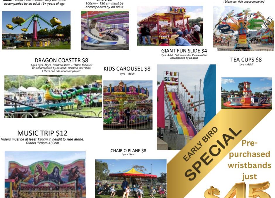 Pre-purchase your wristband via https://www.trybooking.com/events/landing/1375628 by 4pm Friday 9th May to enjoy unlimited rides from 10am to 3pm!