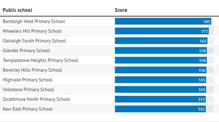 Oakleigh South Primary School, along with Wheelers Hill Primary and Serpell Primary, ranked among the top 20 public schools in every category analysed.