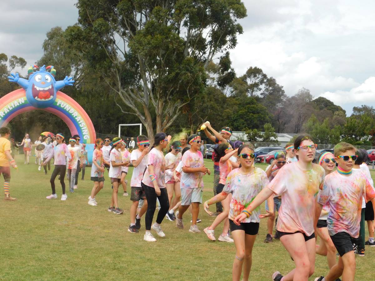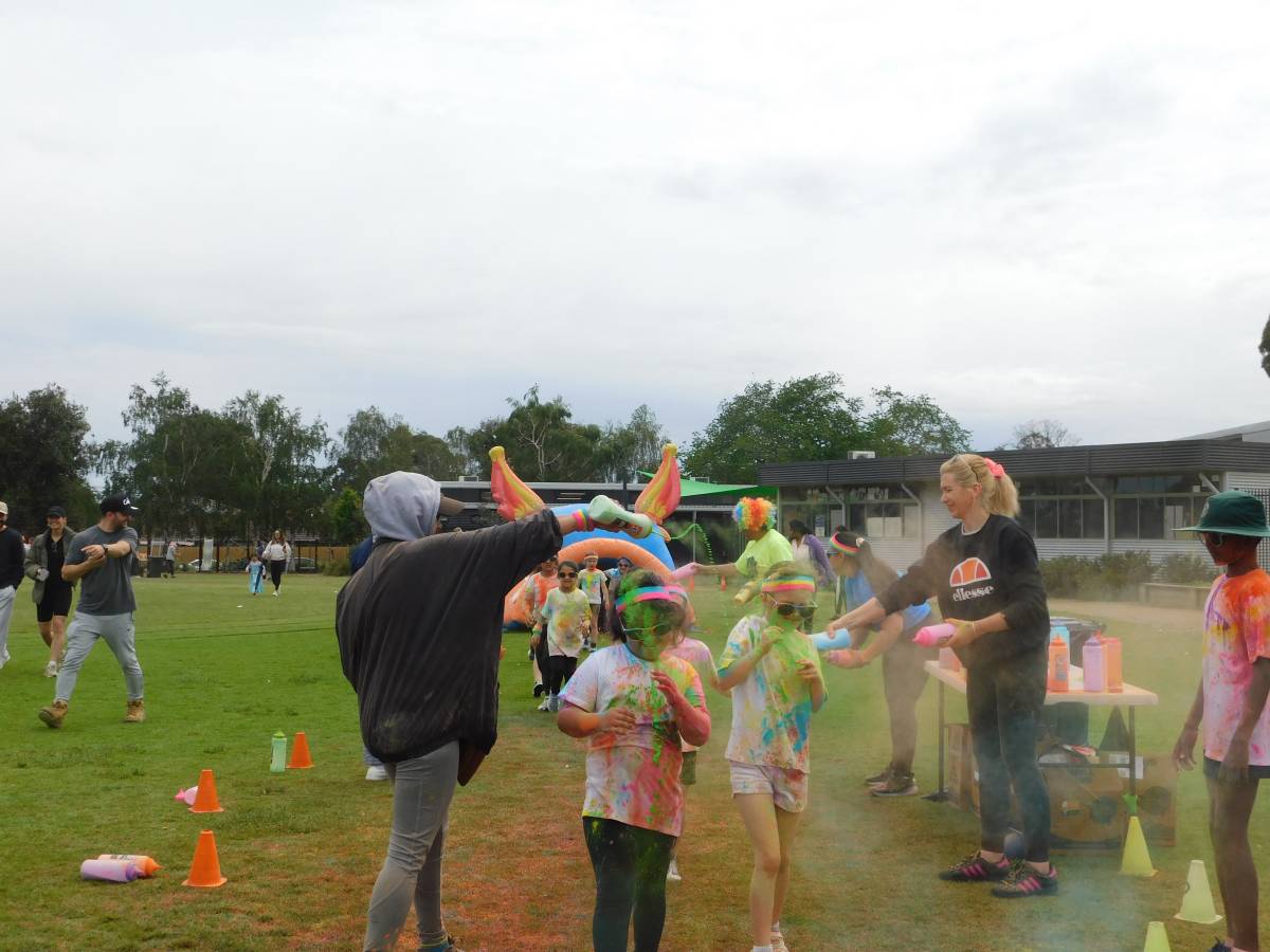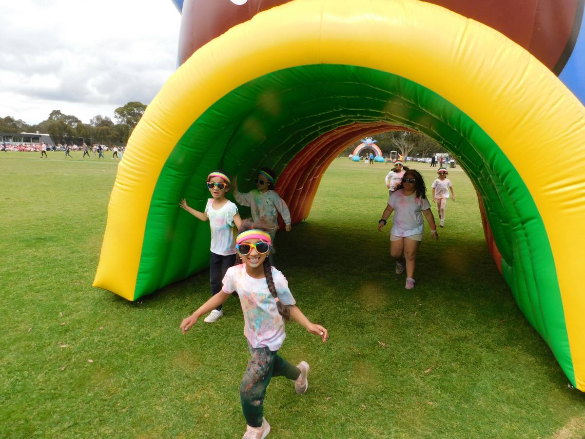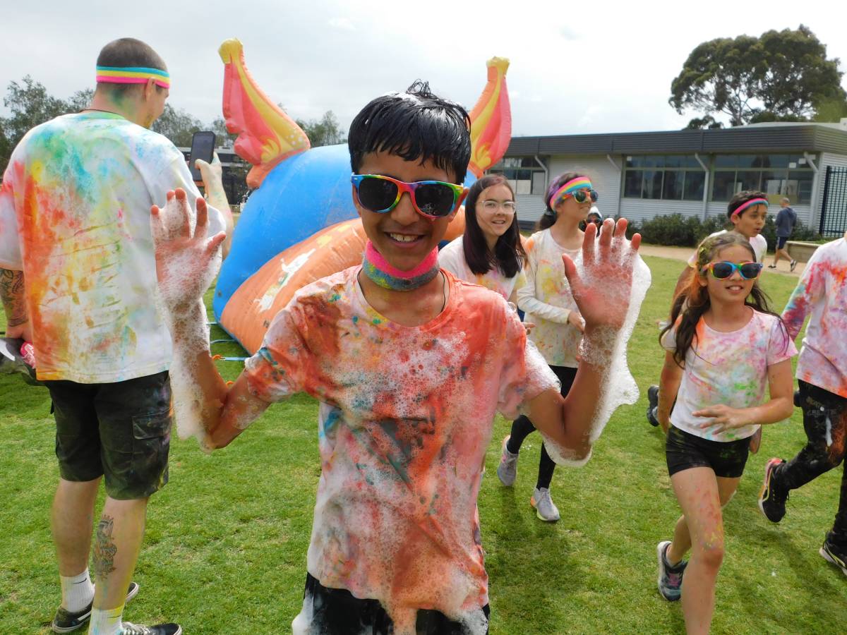 After a wet start, the sun came out just in time for our whole-school Colour Run, turning the oval into a rainbow-filled playground of laughter, movement, and fun. Around 850 students raced, climbed, slid, and jumped their way through colourful obstacles, sharing smiles with friends, classmates, and even teachers.
