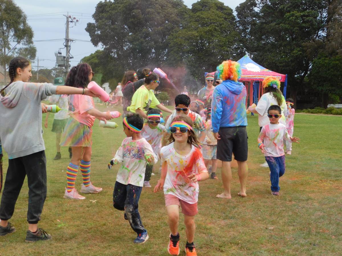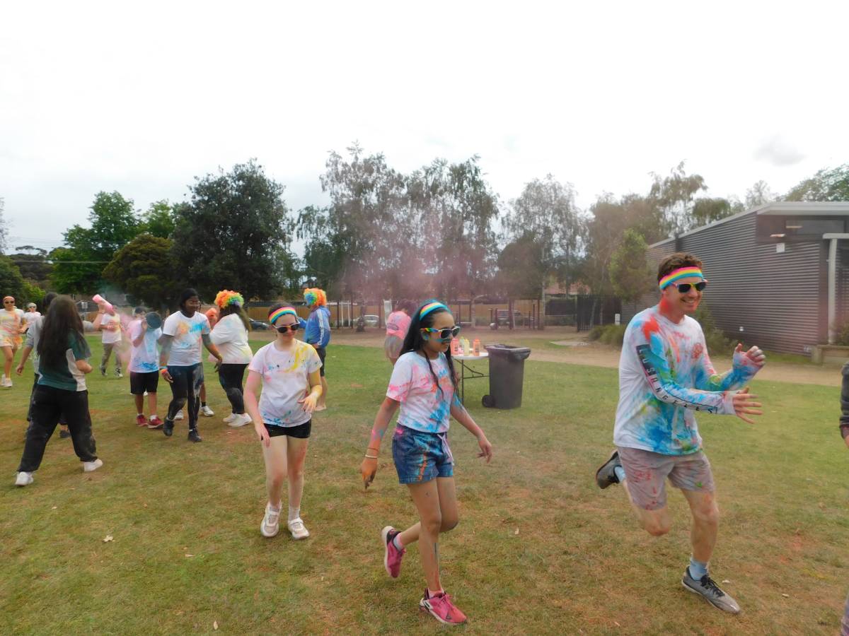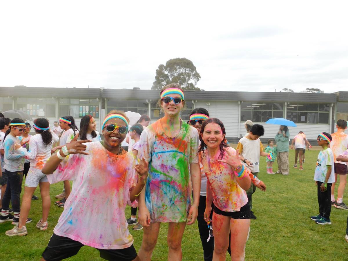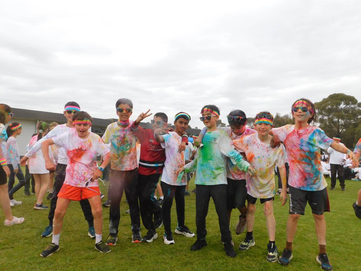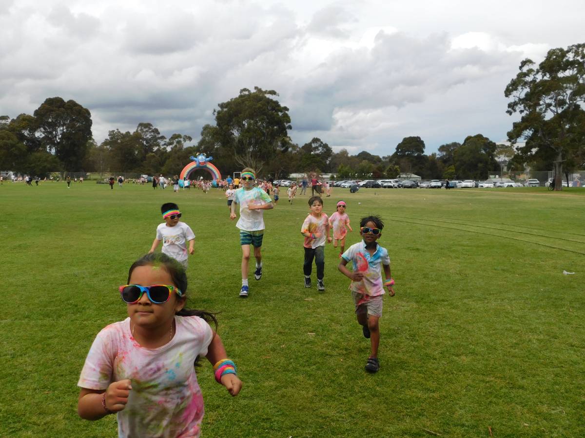 After a wet start, the sun came out just in time for our whole-school Colour Run, turning the oval into a rainbow-filled playground of laughter, movement, and fun. Around 850 students raced, climbed, slid, and jumped their way through colourful obstacles, sharing smiles with friends, classmates, and even teachers.