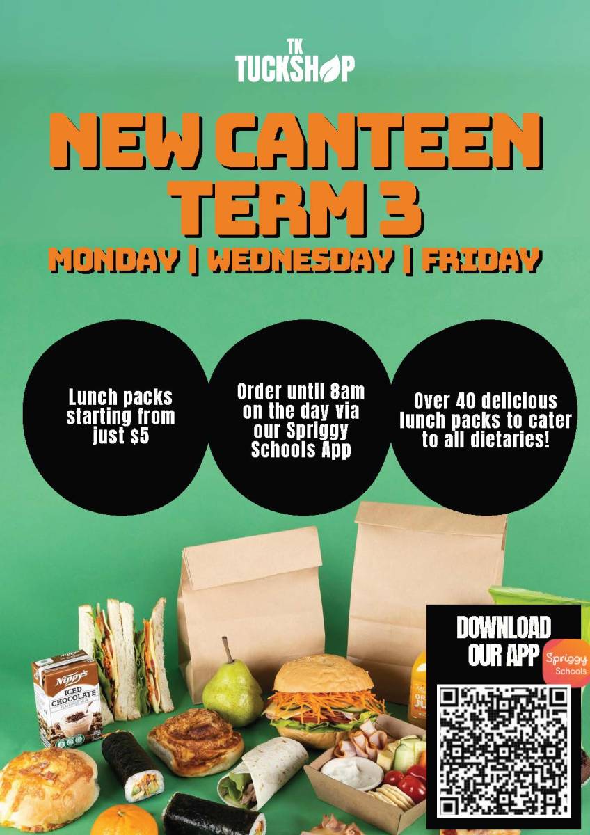 As per our current lunch order schedule, Subway will continue to service our school on Tuesday and Thursday and TK Tuckshop will be our service provider on Monday, Wednesday and Friday. Our current provider, Classroom Cuisine will be unavailable for ordering for the duration of Term 3.