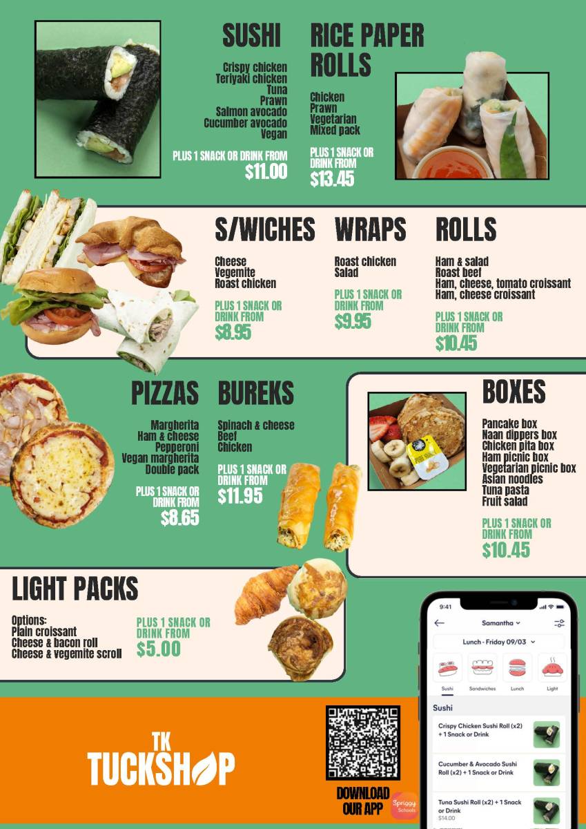 Beginning next term we will be trialing a new lunch order provider, TK Tuckshop. There are 3 ways to register your child/ren: