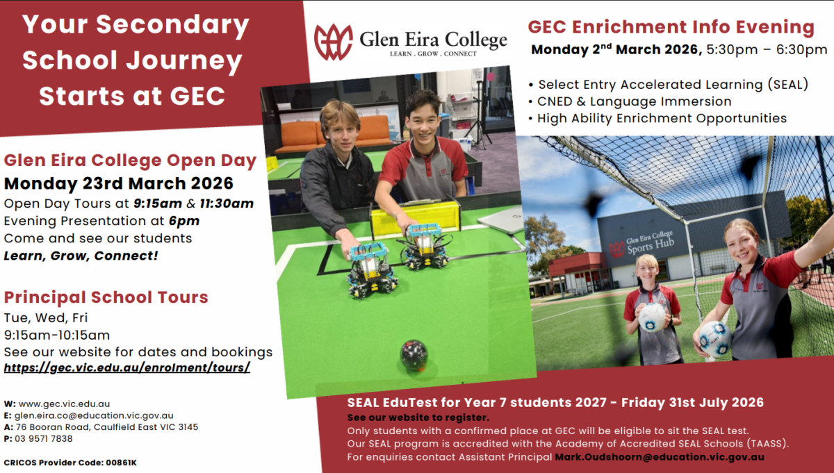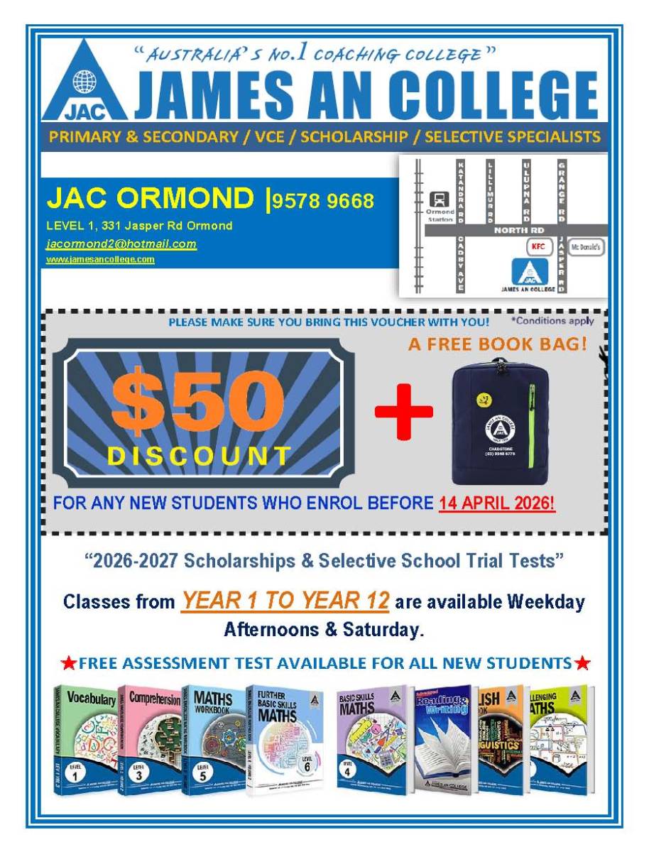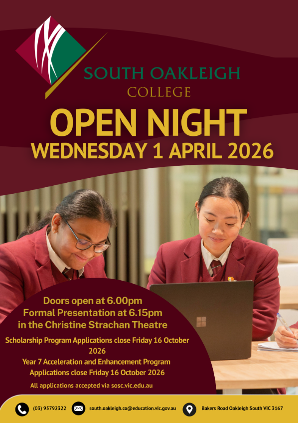 Disclaimer: The organisations advertised in this newsletter are not affiliated with and have no relationship to Oakleigh South Primary School. The publishing of these advertisements does not imply endorsement or recommendation of these products or services by the school. They are provided as a community service.