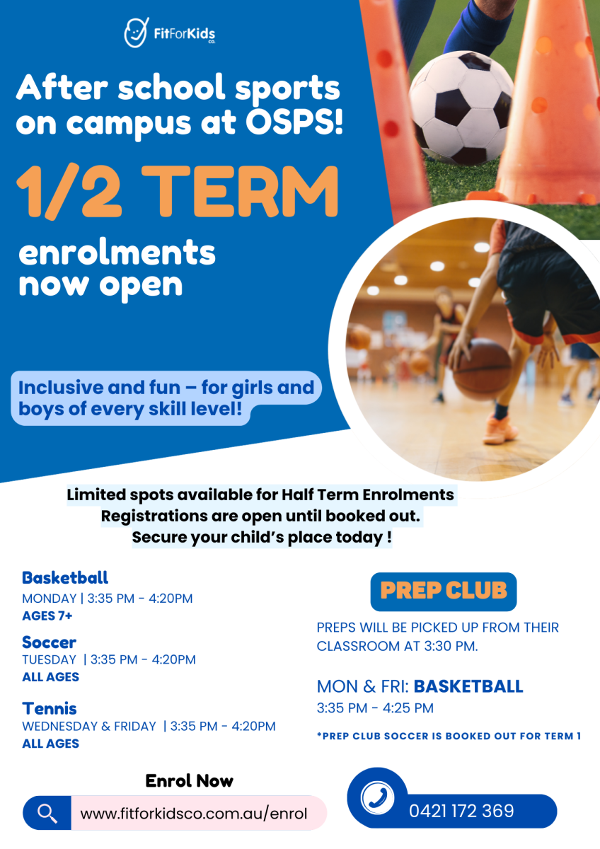 We host a range of after-school programs and activities run by external providers here at OSPS. These programs operate independently from the school and are offered directly to families by the providers. All advertisements for these activities can be found in the OSPS Facility User Group section of our notice board and newsletters.