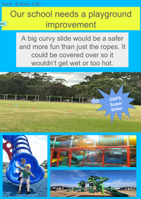 A lot of great work has been done by Year 3 students in understanding how to collaborate effectively using the Google Drive platform. A Design Thinking task challenged students to identify an area within the school and create a persuasive text on a Google Slide in poster form. Students were able to transfer images, store and share files and simultaneously work on the same document.