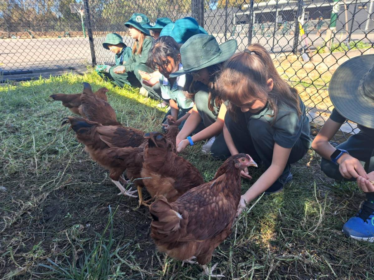 We are grateful for our Year 3 farming program. We are having fun, enjoying daily farming activities with Mr Wilde, where we learn how to harvest our produce, weed the vegetable gardens, and take care of our delightful chickens and ducks.