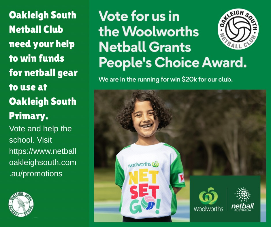 SUPPORT OAKLEIGH SOUTH NETBALL CLUB — VOTE NOW FOR WOOLWORTHS GRANT!
