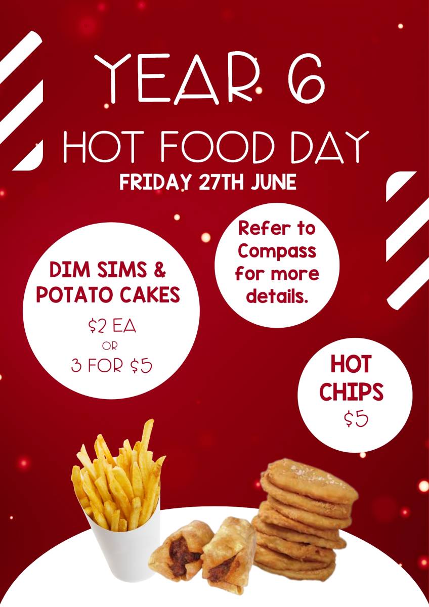 Parent Group is pleased to be hosting a Hot Food Day for Year 6 students on Friday 27th June 2025.