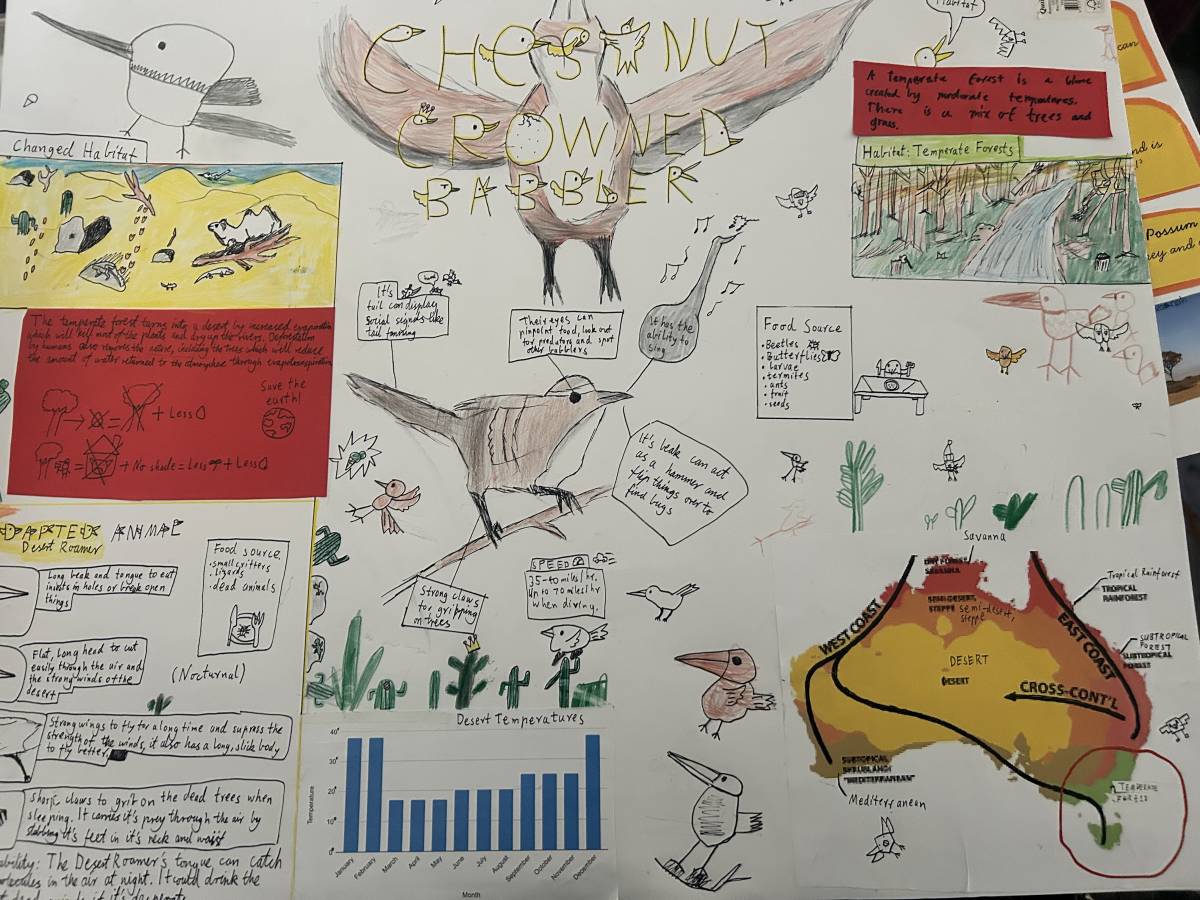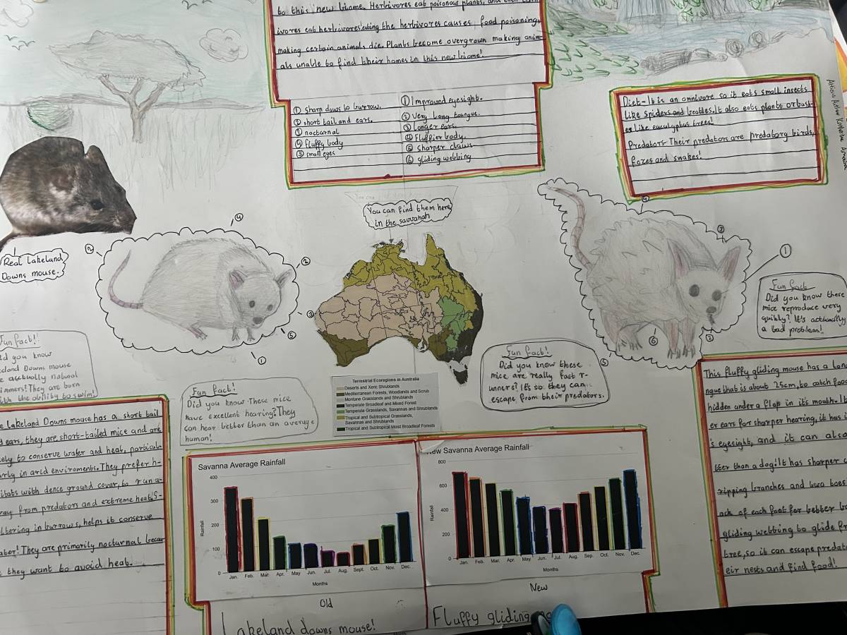 Year 5 students have been busy putting their science thinking caps on this term as they explored how animals and plants adapt to survive in different environments. In an exciting group project, each team was given an Australian biome to investigate. They chose a native animal to research, then imagined a major climate event such as flooding, drought or fire that would completely change their biome. From there, they designed a new version of their animal with clever adaptations to help it survive in its new environment.