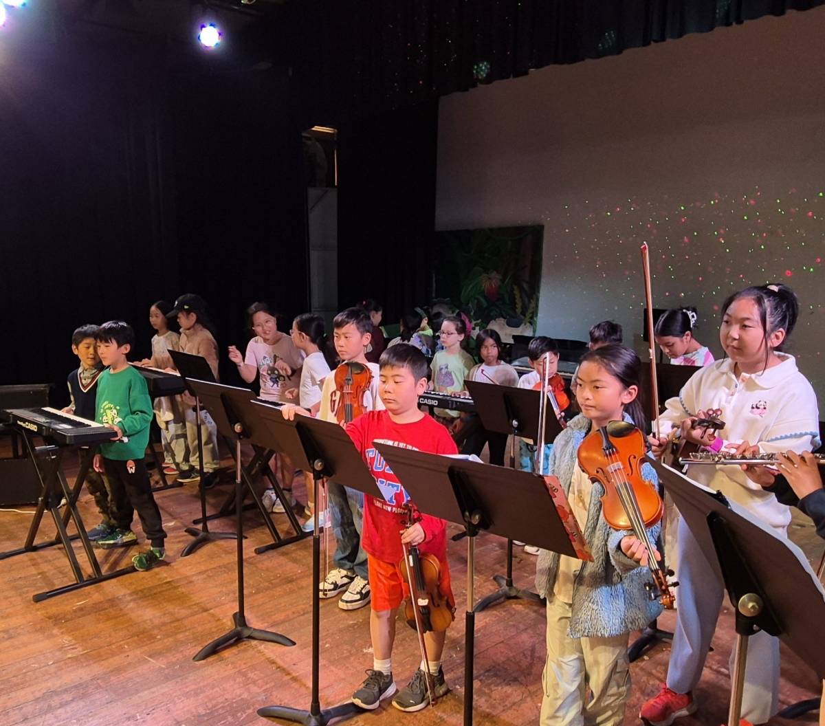 Each Year 5 class selected a song to learn and perform, with students choosing their own parts – vocals, keyboard, percussion, ukulele, boomwhackers, or personal instruments like flute and violin. These performances, developed through collaborative rehearsal, will be shared with peers next week.