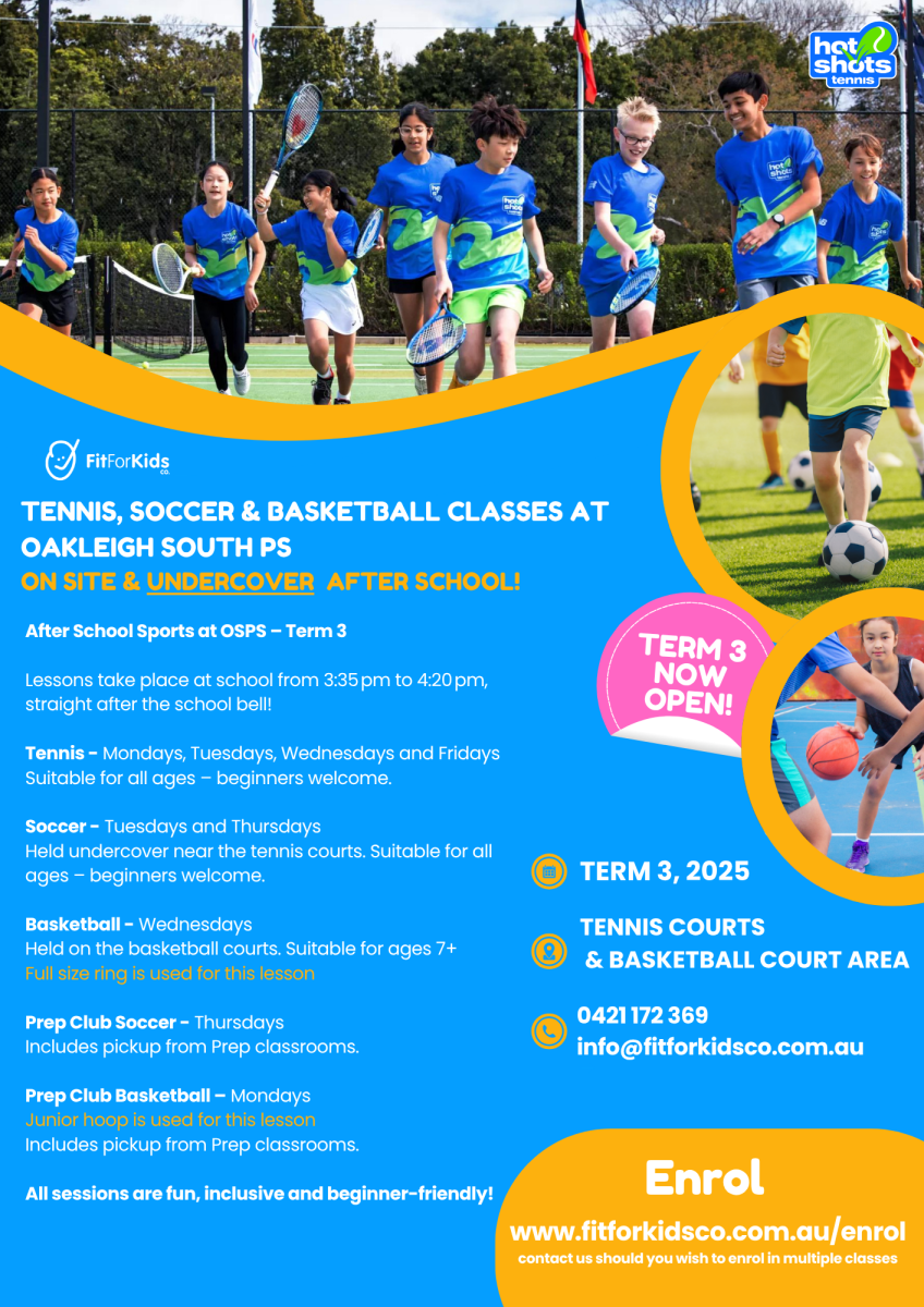 Disclaimer: The organisations advertised in this newsletter are not affiliated with and have no relationship to Oakleigh South Primary School. The publishing of these advertisements does not imply endorsement or recommendation of these products or services by the school. They are provided as a community service.