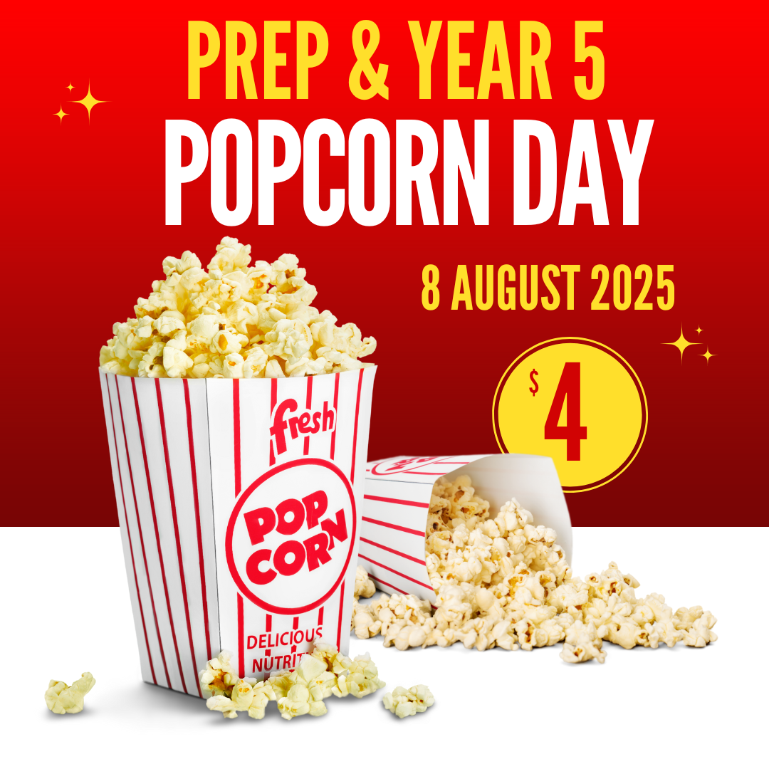 Parent Group will be hosting a Popcorn Day for Prep and Year 5 students on Friday 8th August 2025.