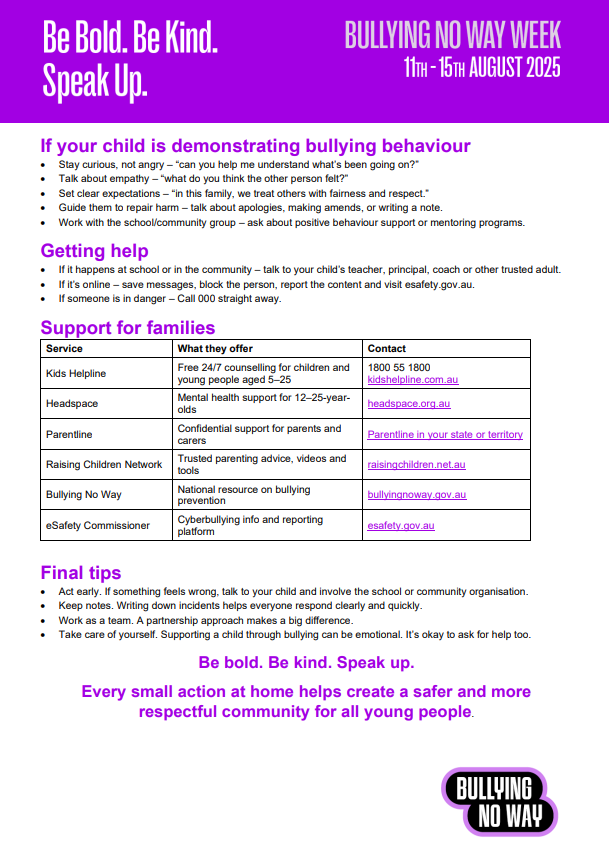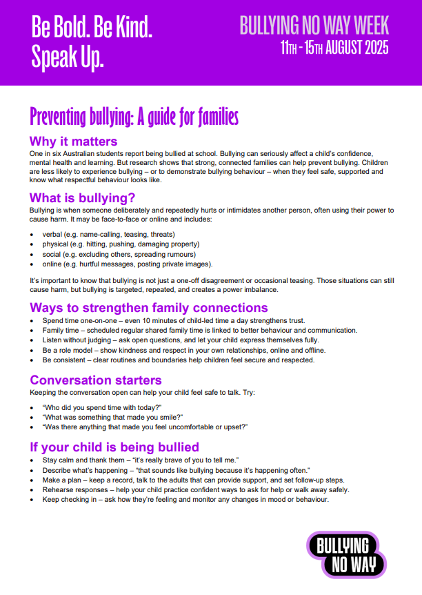This week, Prep–Year 6 students took part in the National Week of Action Against Bullying and Violence. While our school is always committed to creating a safe and respectful environment, this annual event shines a spotlight on bullying prevention and unites schools across Australia in taking action.
