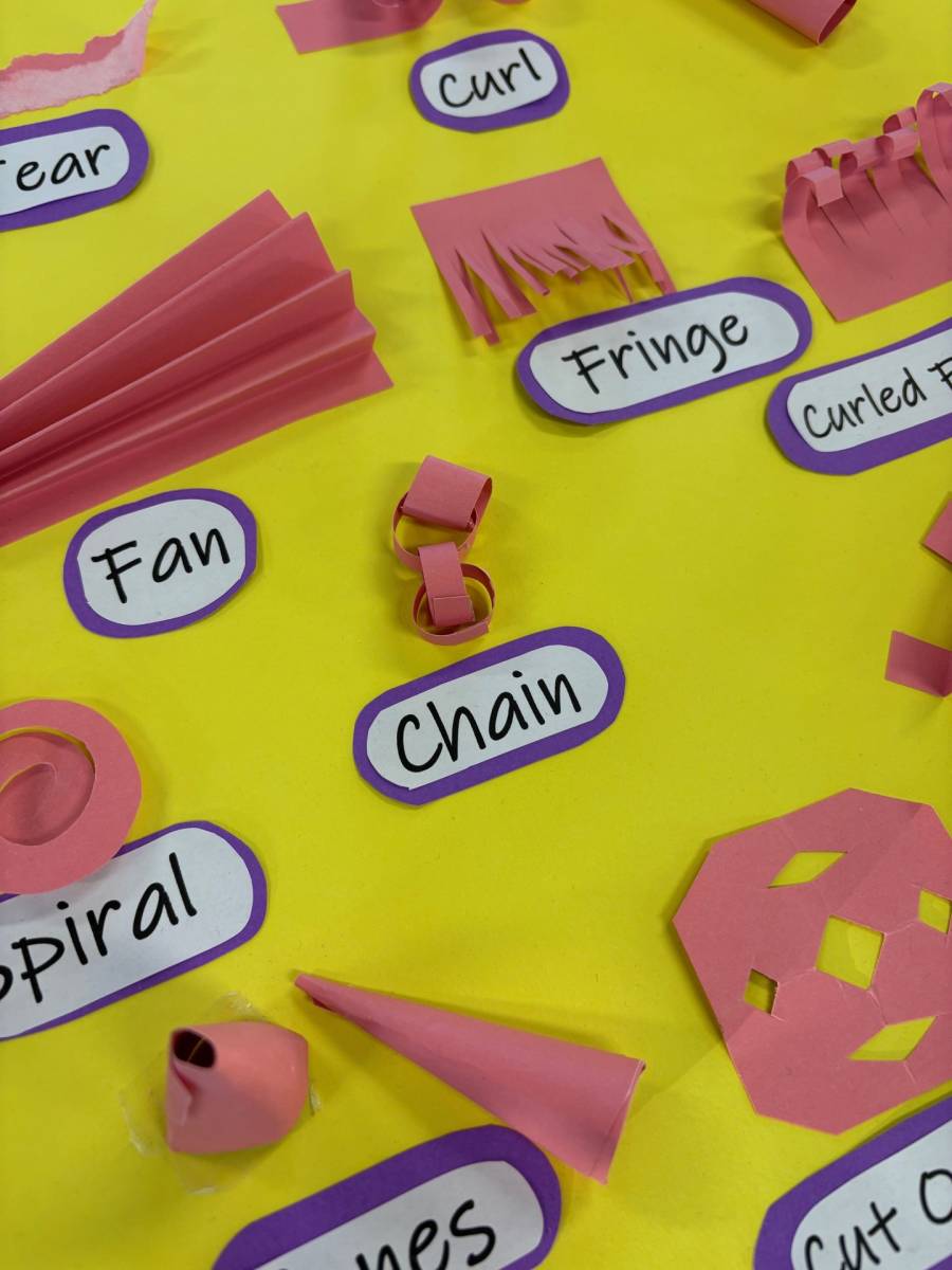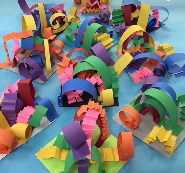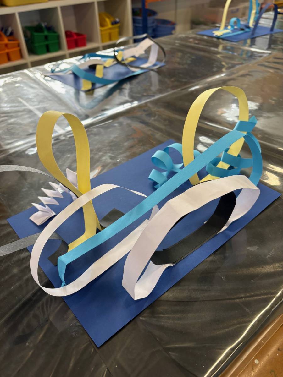 Grade 2 students have taken paper into the third dimension, experimenting with curling, fringing, folding, twisting, and layering to create sculptural works that leap off the page – from abstract architecture to wild paper gardens.