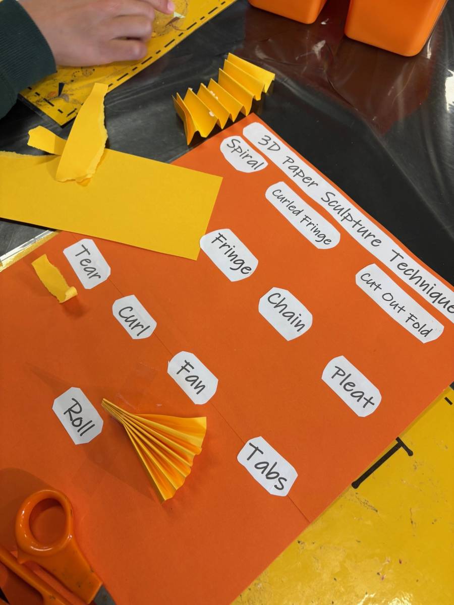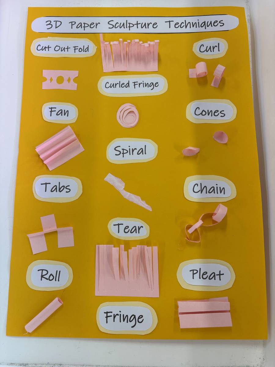 In Grade 5, students have stepped into the role of technique experts, creating Paper Sculpture Technique Posters that showcase and explain different paper-shaping methods. These will become valuable classroom references for future sculpture projects.