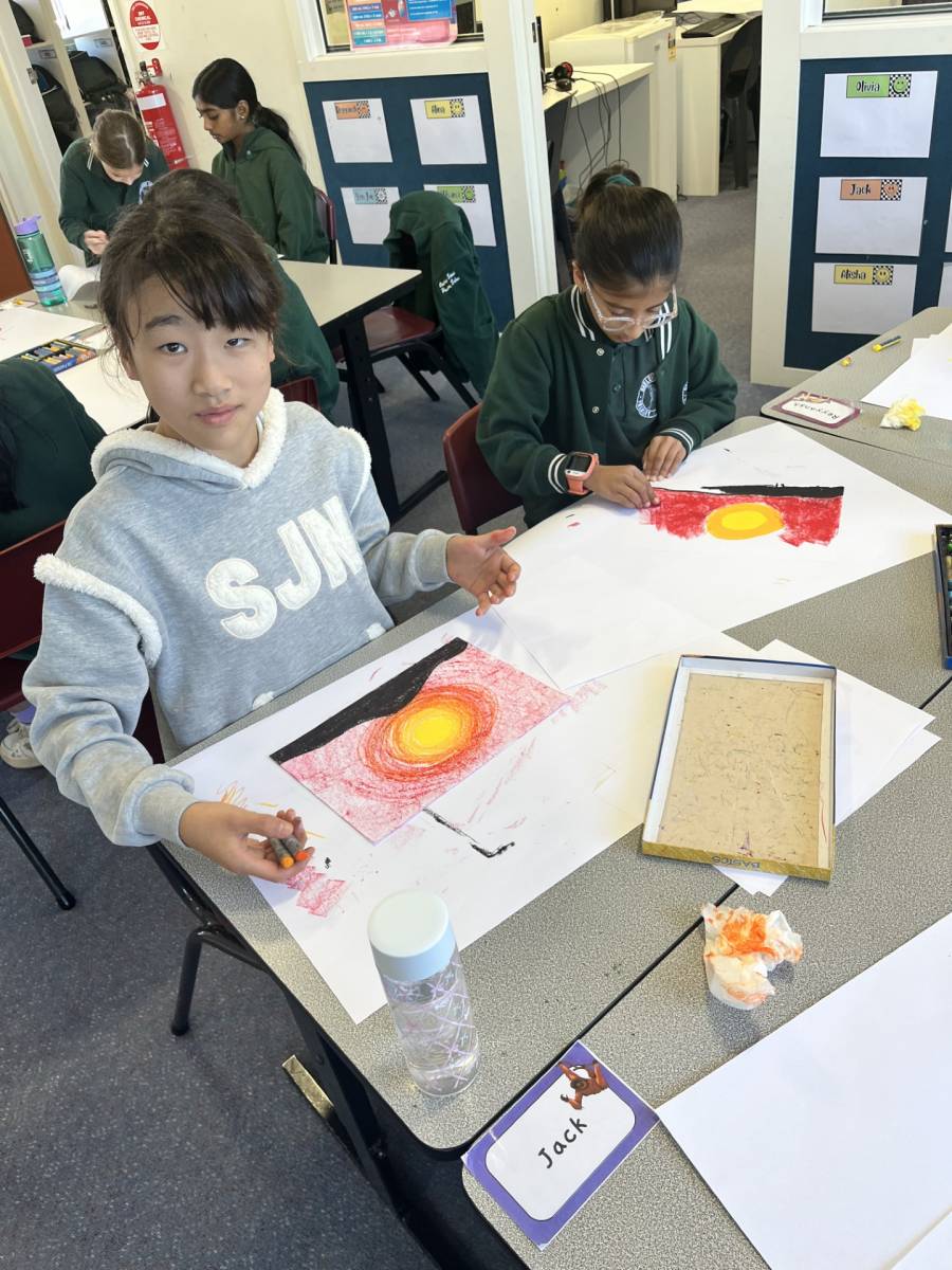 Inspired by the story’s themes and imagery, students created stunning sunset animal silhouettes. These activities were completed alongside students from our Japanese exchange program, making it a truly collaborative and cultural experience.