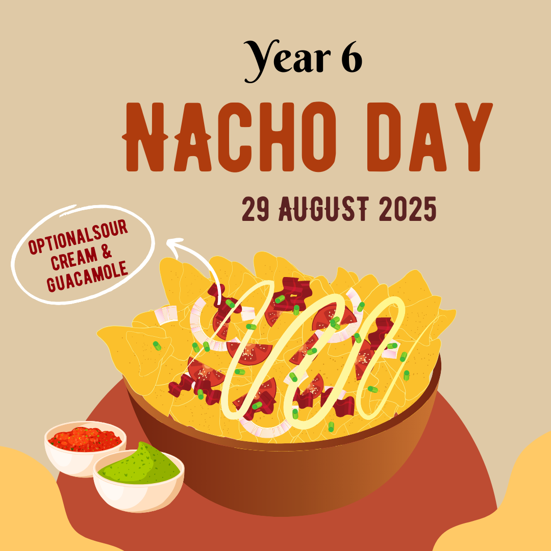 Parent Group will be hosting a Nacho Lunch Day for all Year 6 classes on Friday 29th August.