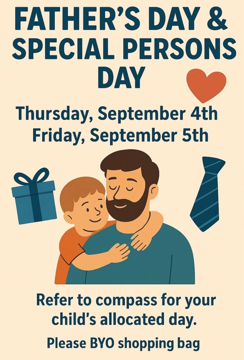 Also, just a reminder that our Parent Group will be running the annual Father’s and Special Person’s Day stall next Thursday and Friday. Thank you to the Parent Group for providing this opportunity for our students. The Prep children are especially excited to celebrate their dads or special person in their classrooms next Friday afternoon.