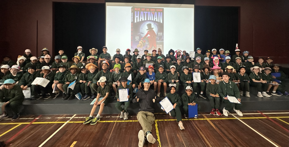 On Monday, students in Years 3 to 6 were excited to welcome back author Adam Wallace for a special session to launch his new book, Hatman! Many students joined in the fun by wearing their favourite hats to celebrate.