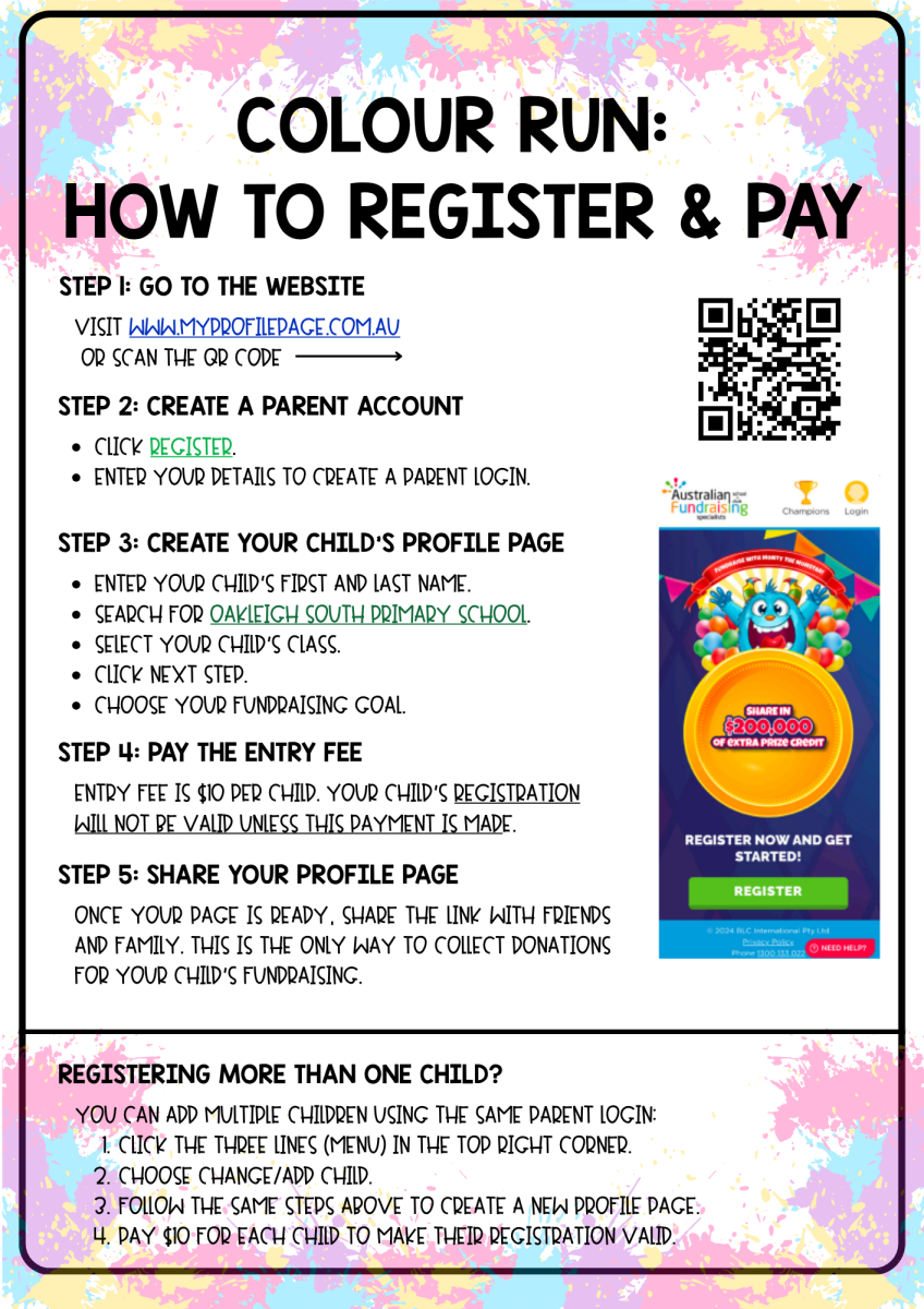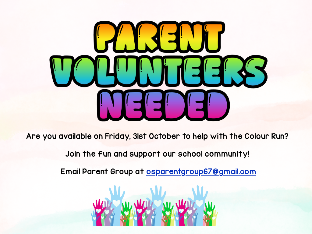 We’re looking for parents and carers to join in the fun by volunteering on the day! Help with spraying colour, setting up, and making the event a success. It’s a great way to get involved and be part of the excitement. If you are available to help on the day, please email Parent Group at osparentgroup67@gmail.com