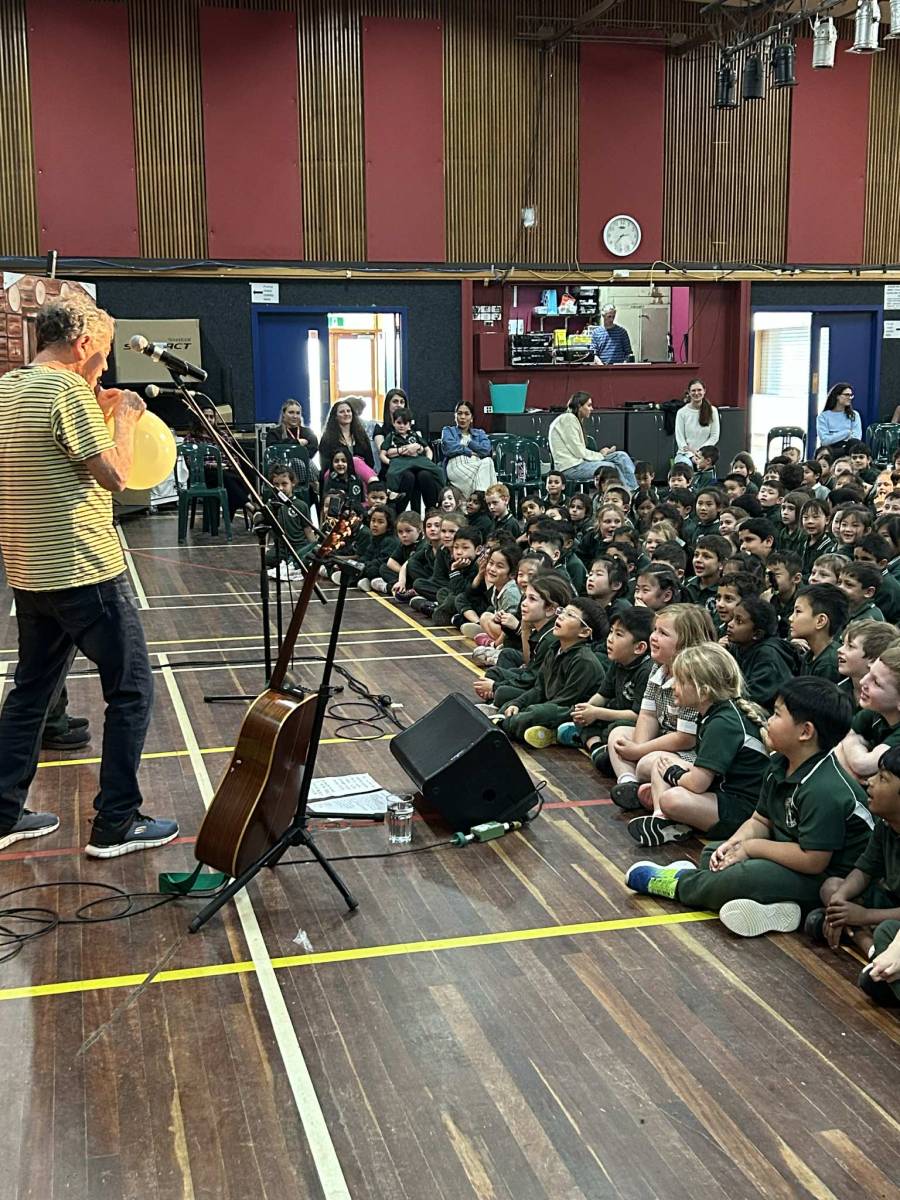 Prep to Year Three students recently had the exciting opportunity to sing along with Peter Combe, who performed for them this week. It was a fantastic concert, and Peter was very impressed with our students’ singing voices!