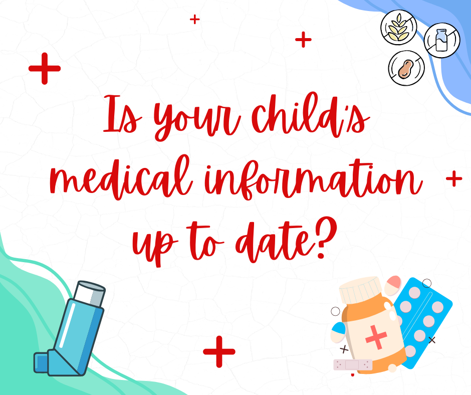 If your child has a new, updated, or changed medical condition, or takes any regular medications at home, please ensure this information is shared with the school so our records remain accurate in the event of an emergency.