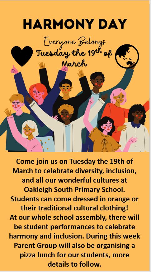 – Harmony Day (Wear orange or traditional dress)