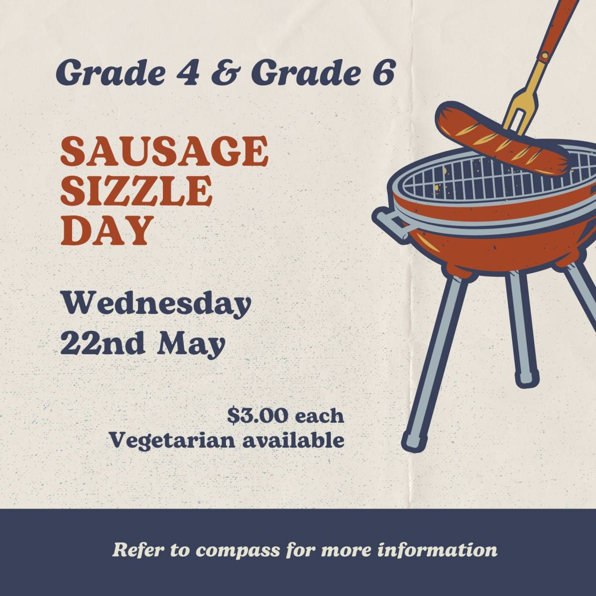 The Year 6 classes are being offered a BBQ sausage lunch next Wednesday, 22 May. Sausages will be $3 and there is also a vegetarian option available.